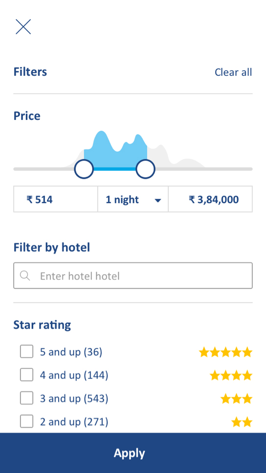 TUI hotels listings help users discover places and activities they didn't know they were looking for. Improved and customized browsing experience using filters like price, location, ratings, and hotel class to narrow your search.