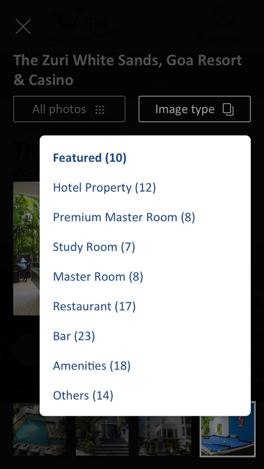Every image has a story to tell and also has the ability to inspire and engage people. That's why we designed a beautiful images' gallery section for TUI where people can have a visually richer experience .