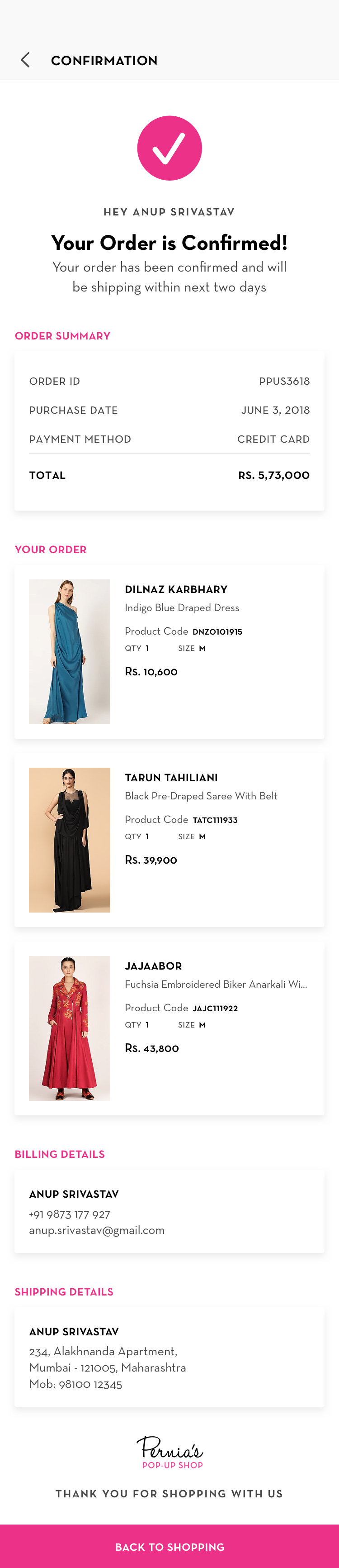 Launch the sitePerniaspopupshop aspire to create a platform that gives customers a memorable shopping experience and foster the growth of Indian brands and designers. We created the app splash screens to explain what being Perniaspopupshop is all about.