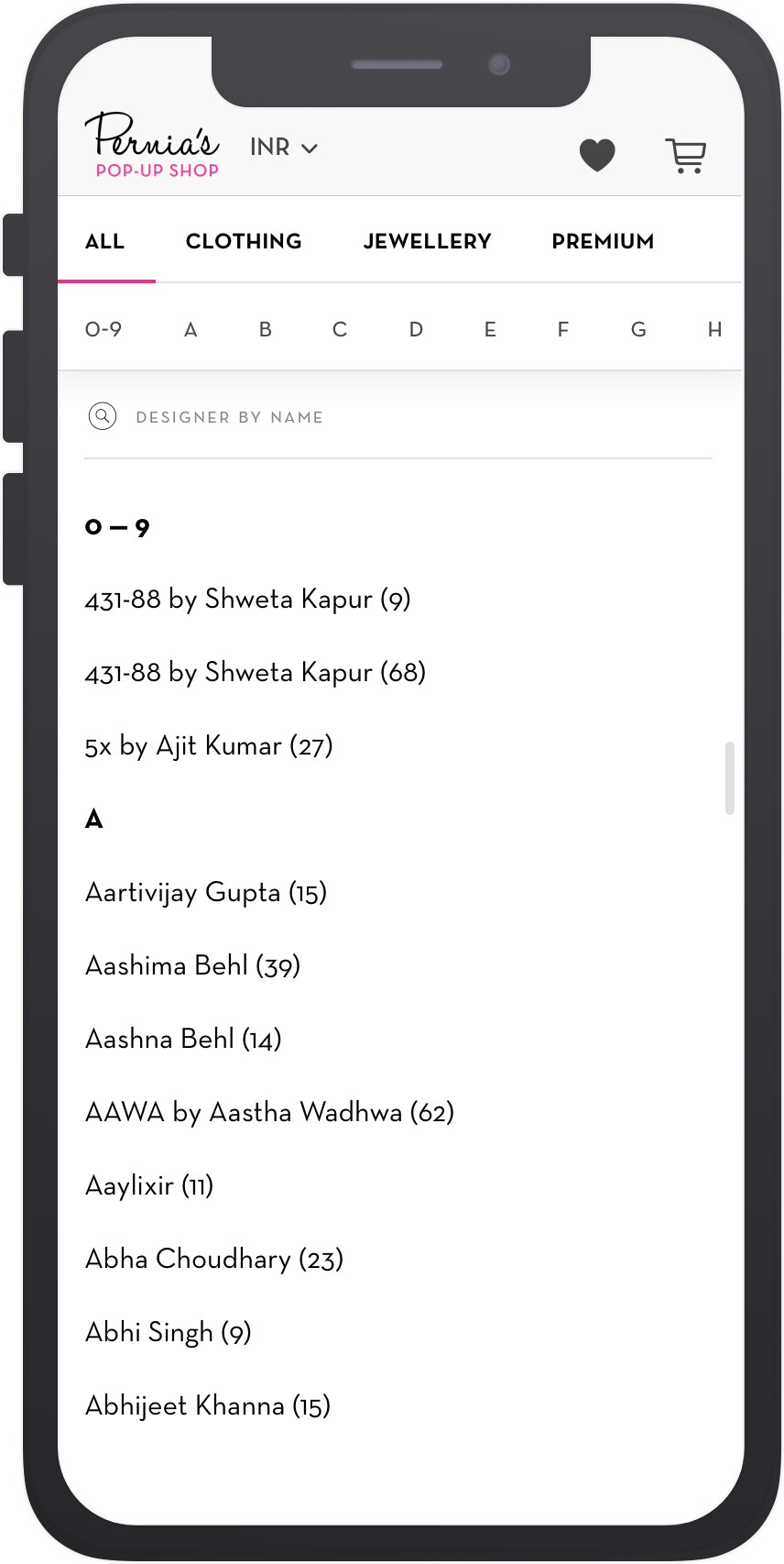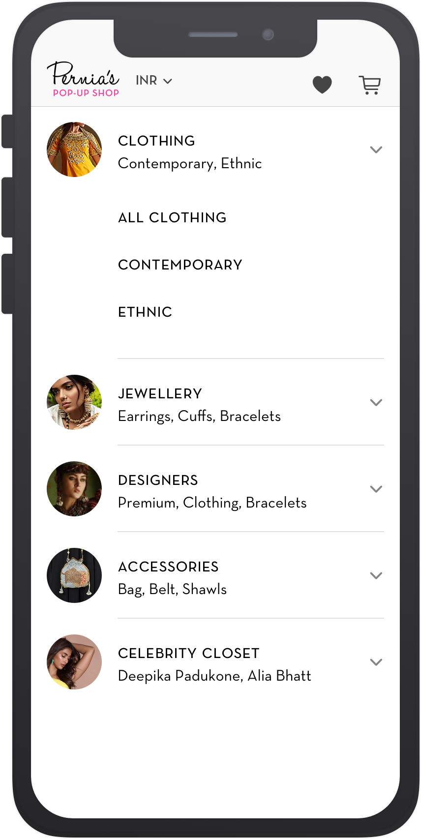 In September 2015 we were contacted by Pernia Qureshi (Indian fashion entrepreneur) and asked to collaborate in improving the user experience of her digital product, an online luxury fashion store for women and men that offers exclusive women's and men's clothing, designer jewellery, etc.