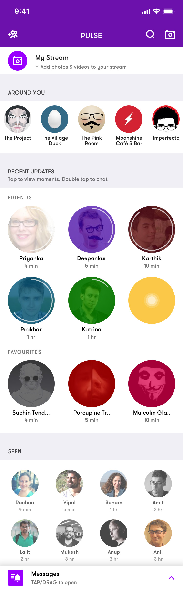 Pulse provides users a full-screen visual experience of streams of colleges around them, with customised stickers to make the experience more fun and engaging. A platform that provides young users relevant content in the form of full-screen multimedia rich stories, which is something they understand the best
