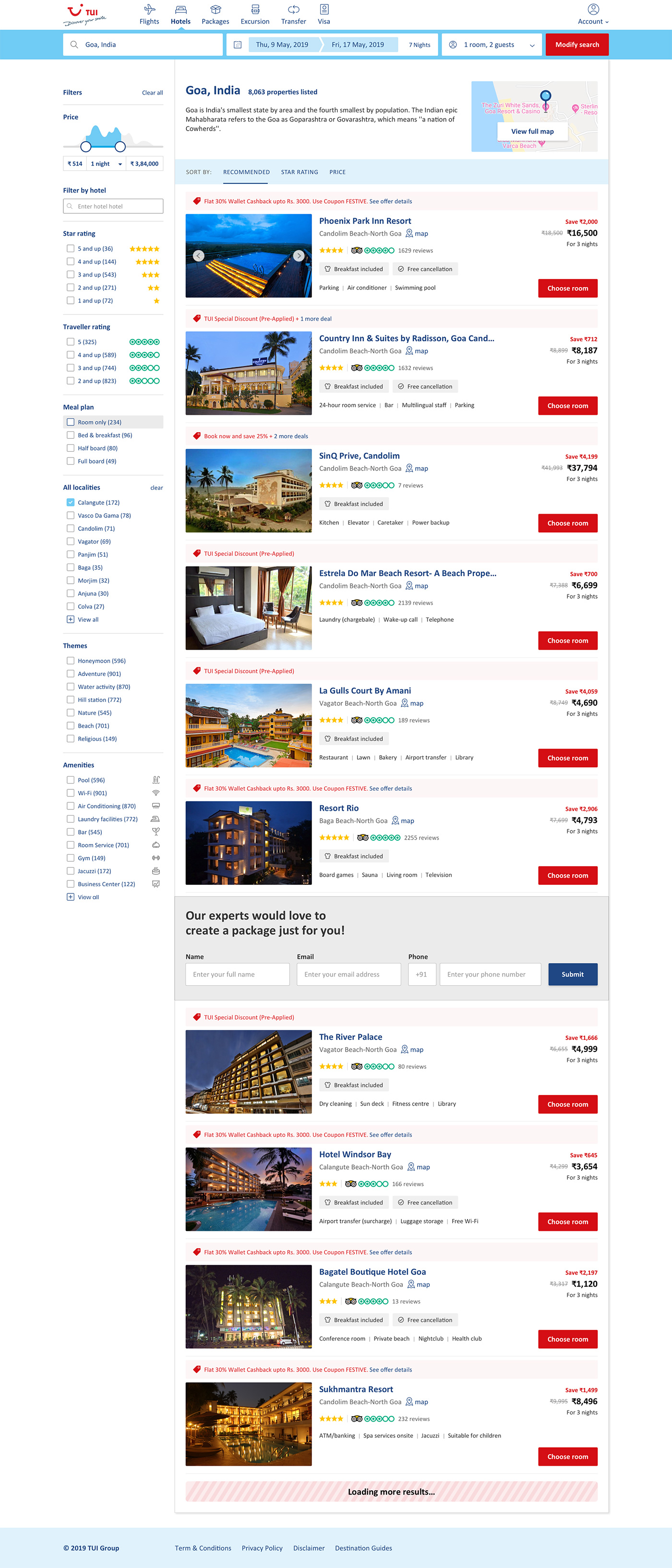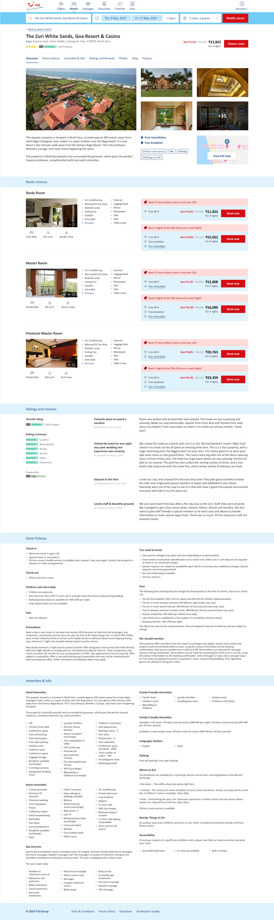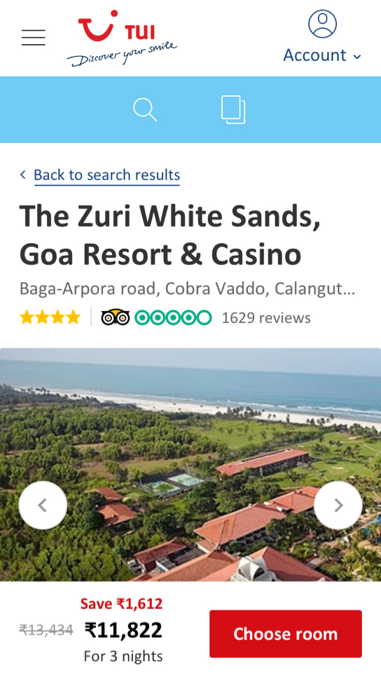 TUI hotels listings help users discover places and activities they didn't know they were looking for. Improved and customized browsing experience using filters like price, location, ratings, and hotel class to narrow your search.